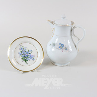 Porz.-Kaffeekanne und 1 Teller, KPM,
