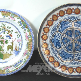 2 Porz.-/Keramikteller, figurales Dekor
