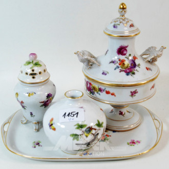 2 versch. Dekeldosen, 1 Kugelvase HEREND