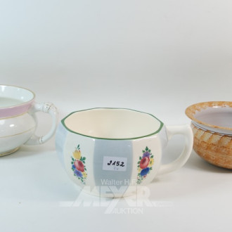 3 Nachttöpfe, tlw. mit Sinnspruch,