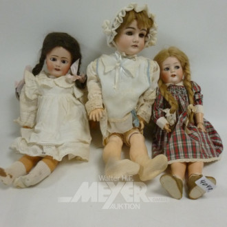 3 div. Puppen tlw. mit Porz.-Kopf