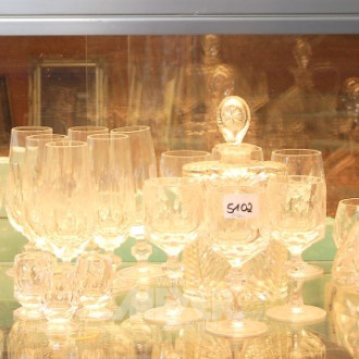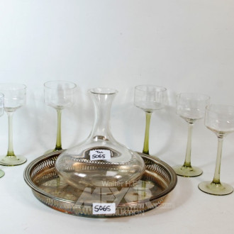 Krist.-Karaffe mit 5 Gläsern, Goldrand