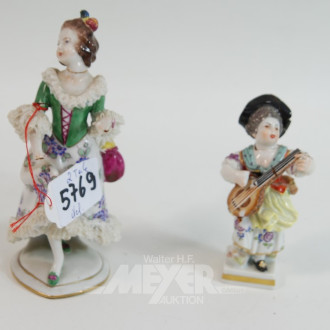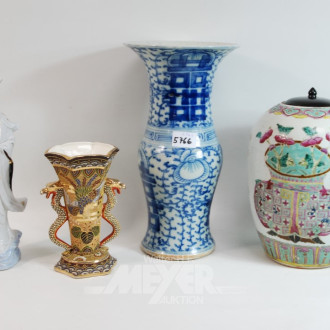4 Teile Porzellan, 1 Figur, 2 Vasen,
