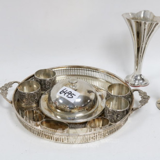 Tablett mit Porz.- Serviettenringen