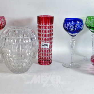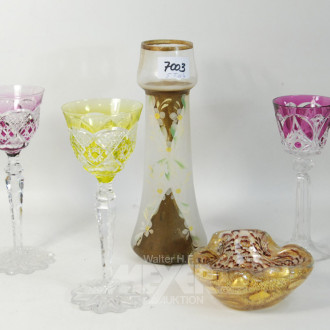 5 Teile Glas u. Kristall: 3 farbige
