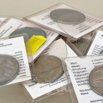 7 Münzen DM 5,--, 1 x DM 10,--