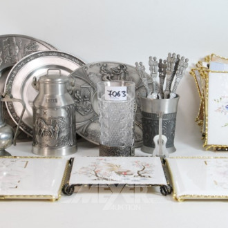 kl. Posten Zinn: Becher, Löffel, Teller,