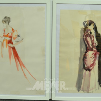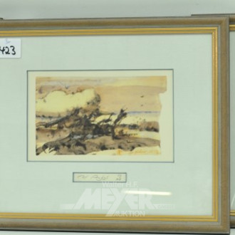 3 kl. Aquarelle ''Der Angler, Seehnsucht