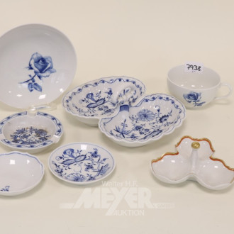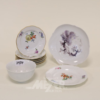 8 versch. kl. Porzellan-Teller, MEISSEN