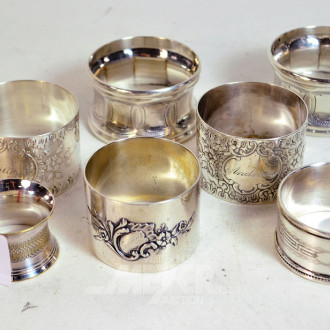 7 Serviettenringe, teils Silber
