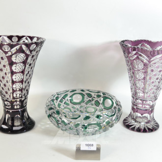 3 Teile Kristall: 2 Vasen, 1 Schale
