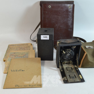 Weltatlas und 2 Fotoapparate