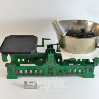 Marktwaage mit Schale und Gewichten