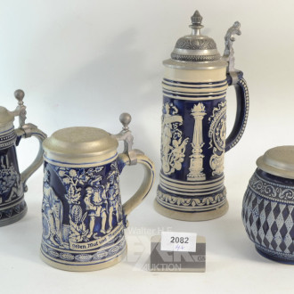 4 div. Bierkrüge, Keramik, mit Zinndeckel