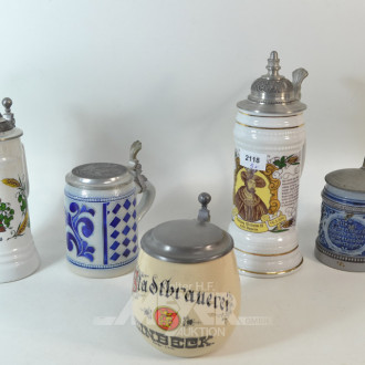 5 div. Bierkrüge mit Zinndecekl,
