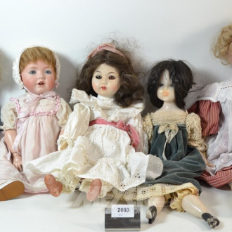 5 versch. Puppen, tlw. mit Porz.-Kopf,