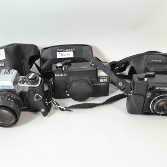 3 versch. Fotokameras: KONICA, ROLLEI,