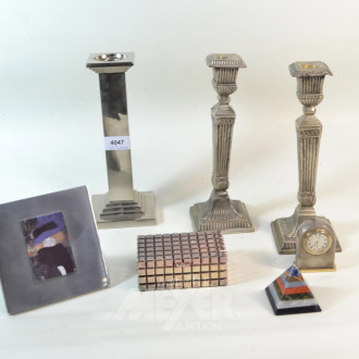 Kerzenleuchterpaar, 1 Metallschale sowie