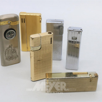 6 versch. Feuerzeuge, 1 Füllfederhalter