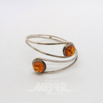 Armreif, 925er Silber, mit 2 Bernsteinen