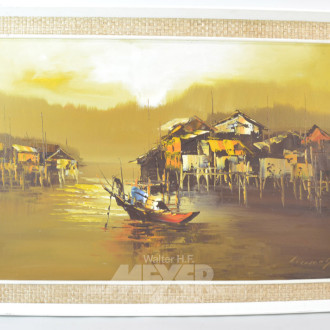 Paar Gemälde, ''Dorfstraße mit Staffagen,