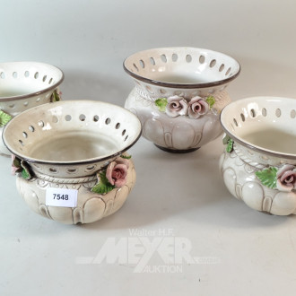 4 Keramik-Überfangtöpfe, Rosendekor,