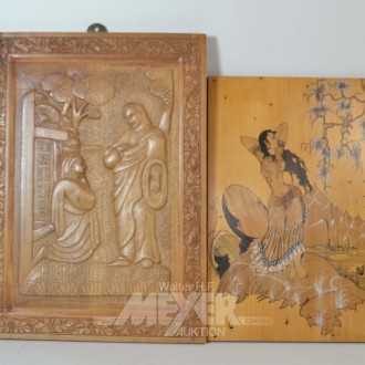 Holzreflief sowie 1 Holzbild ''Tänzerin''