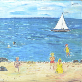 Gemälde ''Mutter mit Kind vor Siedlung''