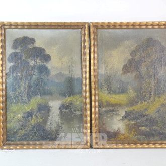 2 Gemälde ''Wald mit Bachlauf'' unsigniert
