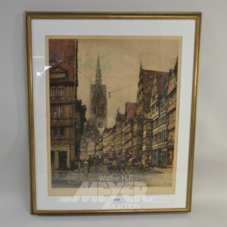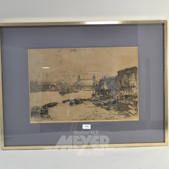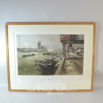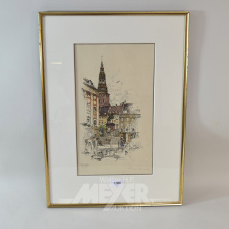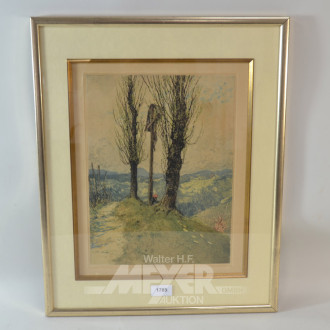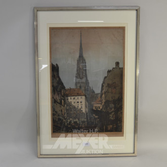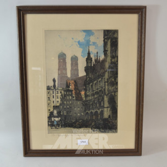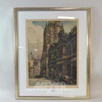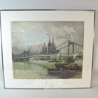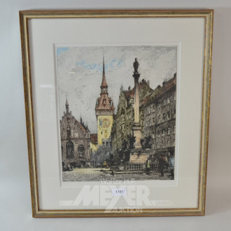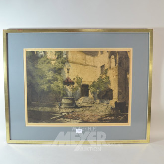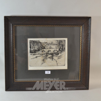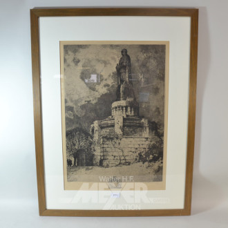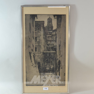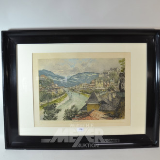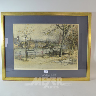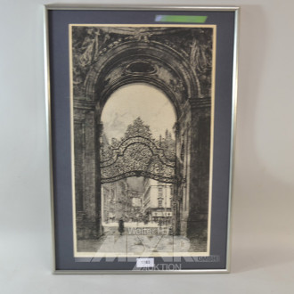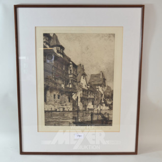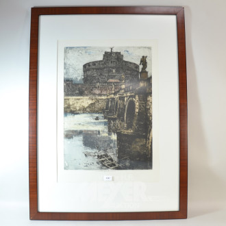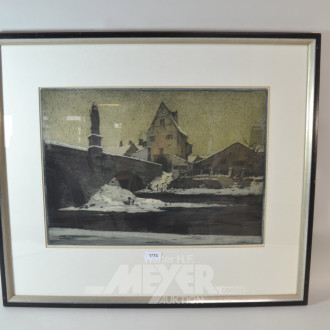 Farbradierung ''Bruchsal, Nepomukbrücke