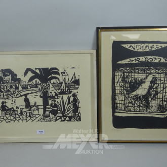 2 versch. Bilder, unleserl. sig.,