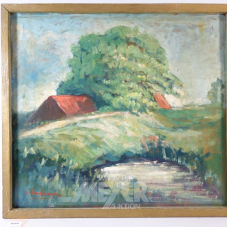 Gemälde ''Dorfansicht vor Gebirgssee''