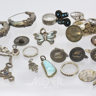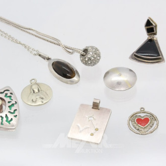 9 Ringe Silber, tlw. bes. mit Farbsteinen