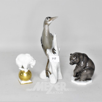 3 Porz.-Figuren ''Bären / Fischreiher''