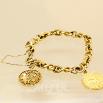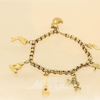 Armband, 585er GG mit 2 Anhängern,