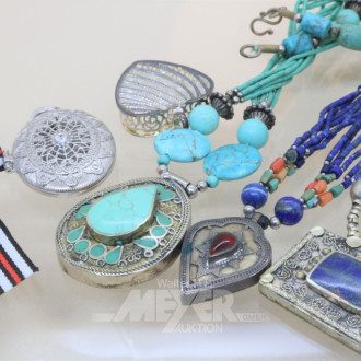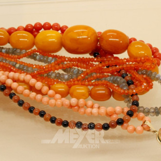 6 versch. Halsketten u.a. Bernstein