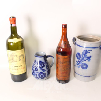 2 Keramikgefäße sowie 2 Dekoflaschen