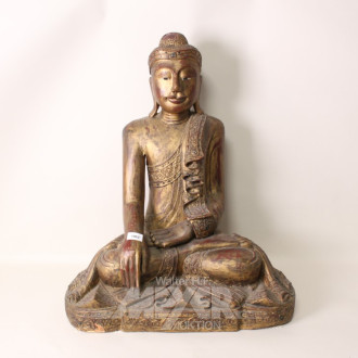 sitzender Buddha, Holz, Höhe: ca. 68 cm,