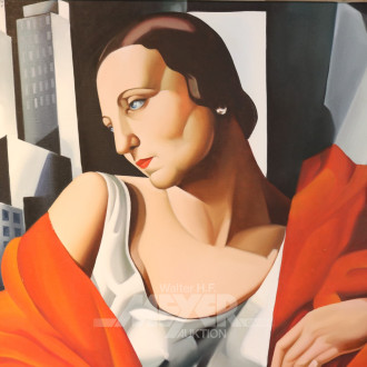 Gemälde ''Damen mit roten Mantel'',