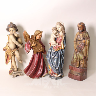 4 Holzschnitzfiguren, u.a. Maria mit Kind,