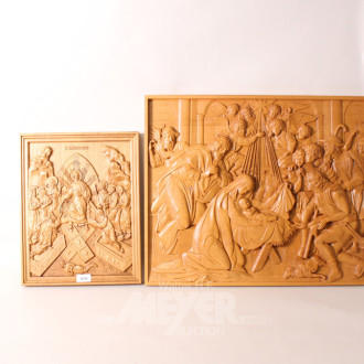 2 religöse Holz-Reliefbilder: Madonna mit