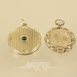 2 Medaillon-Anhänger, 585er GG,