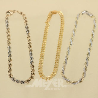 3 Armbänder, 333er GG