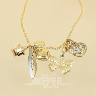 Kette, 333er GG, mit 6 Anhängern,