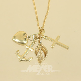 Kette, 333er GG, mit 3 Anhängern,
