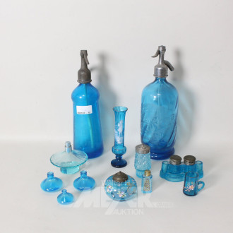 Posten versch. blaue Glasdekorationen