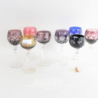 Los-Nr.: 513 8 versch. farbige Kristall-Weingläser