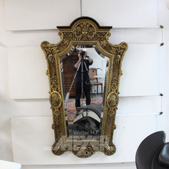 Breite: 99 cm, Höhe: 168 cm, facettiert, aufwendiger, goldf. Rahmen mit figuralen Darstellungen, bestoßen