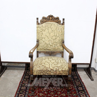 tlw. Gobelin-Stickbezug, florale Muster, Schnitzarbeiten