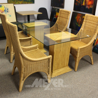 Glas / Holz, Breite: 150 cm, Höhe: 72 cm, Tiefe: 90 cm, Glasplatte mit 2 Standfüßen: Bambus,